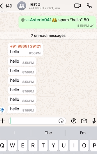 Stop @Asterin041 - Description: The spam will stop only if the person who initiated the spam uses this command.