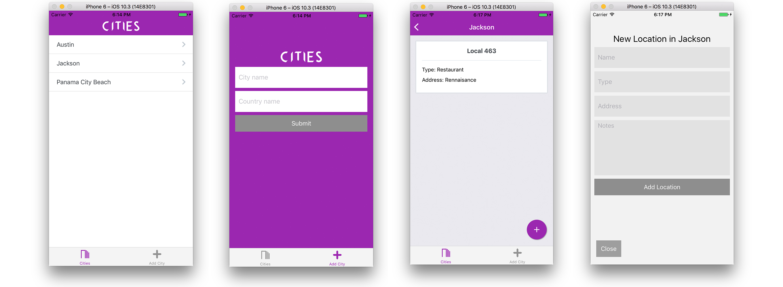 React Native Training - Cities Demo App iOS Android To get started Clone the repo git clone https://github.com/react-native-training/cities.git Install dependencies using yarn or npm yarn or npm i Run on your device