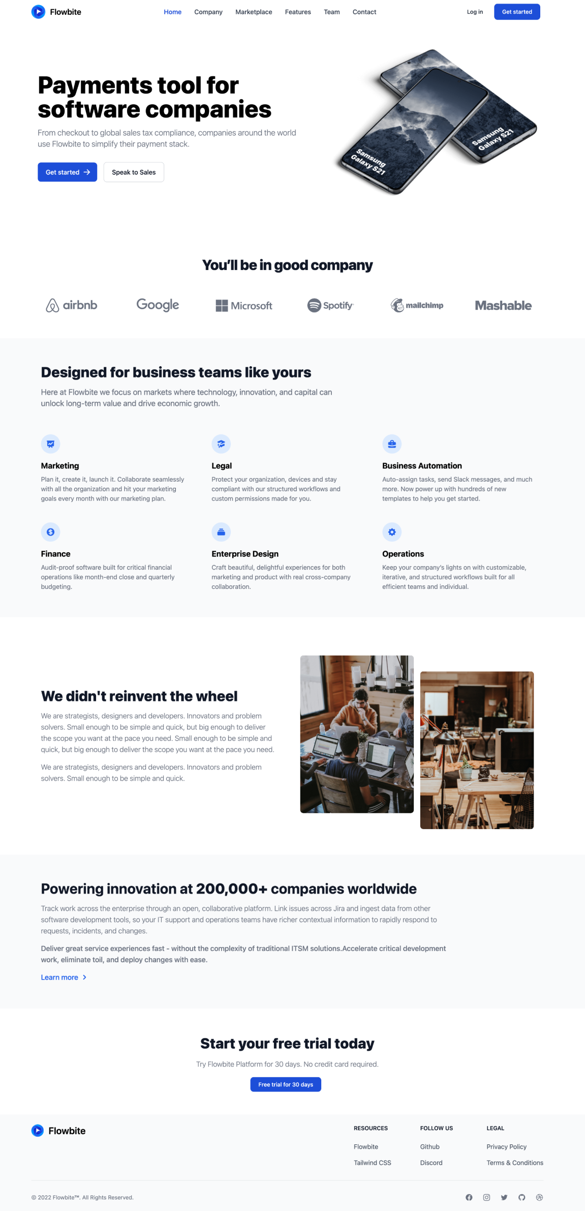 This repository is an example of a responsive landing page built with Flowbite Blocks based on the Tailwind CSS framework and Flowbite library that you can use for your project.